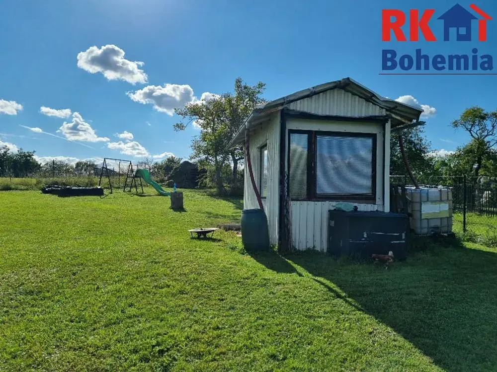 Součástí je udržovaná zeleň, sad, vybudované zázemí pro děti, dále stavební buňka s připojením na elektřinu a plechový skladový vagón, aktuálně využívaný jako sklad nářadí (není zahrnut v ceně prodeje, lze se domluvit).