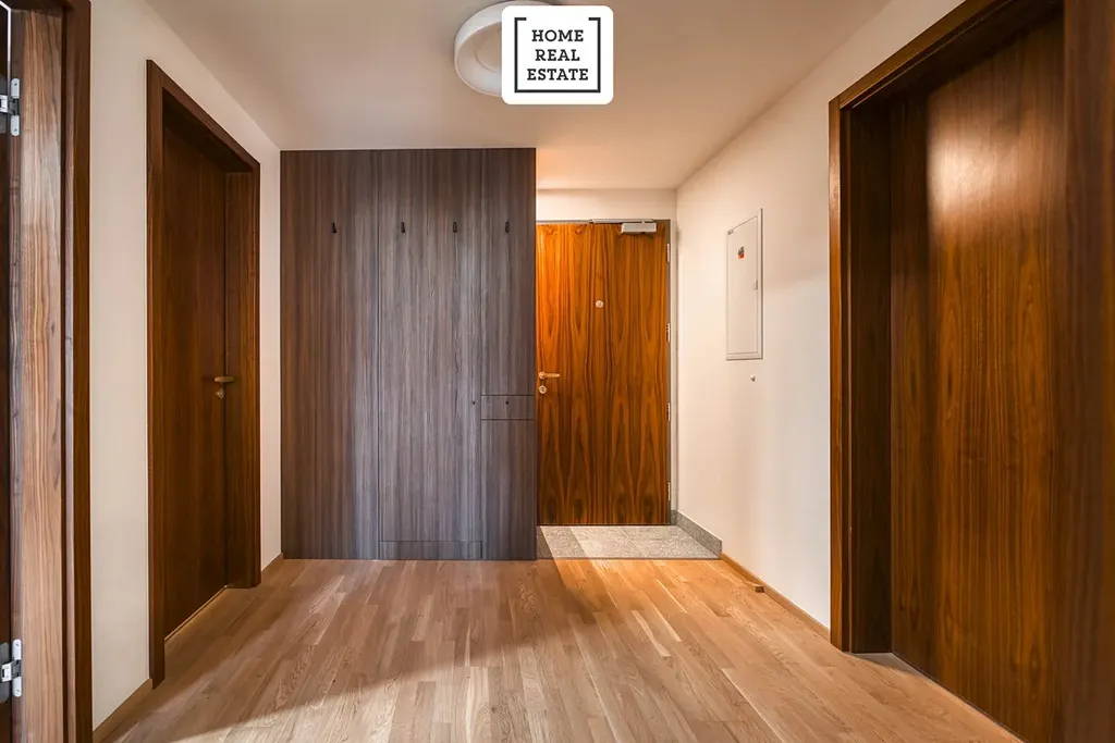 Vybavení bytu bylo zařízené kompletně na míru. Určitě pokud jste milovníci vaření, tak oceníte velkou kuchyň obsahující vše nezbytné a zároveň nadstandardní. Je k dispozici pro budoucího nájemce velké množství vestavěných skříní, velká šatna v ložnici a oddělená prádelna, která obsahuje též vestavěné skříně s pračkou a sušičkou.