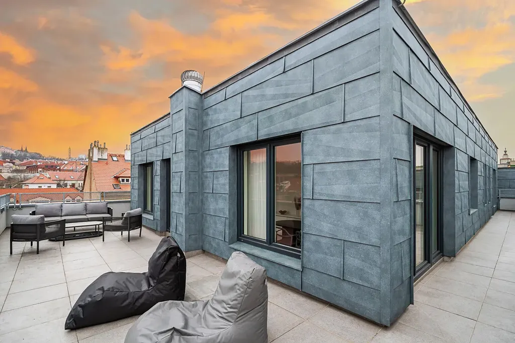 Byt o dispozici 3+KK s celkovou plochou 151 m² se pyšní panoramatickým výhledem, který si můžete vychutnávat z prostorné terasy o rozloze 58 m². Terasa obklopuje celý byt a nabízí možnost zastřešení, čímž lze rozšířit obytný prostor a využívat ji po celý rok.