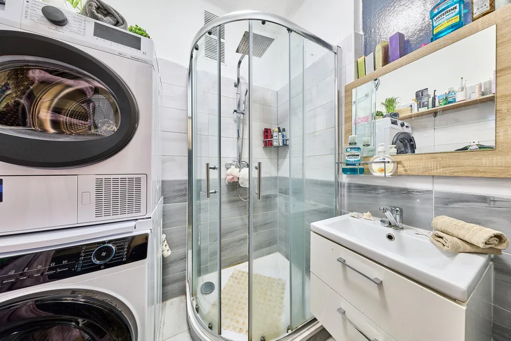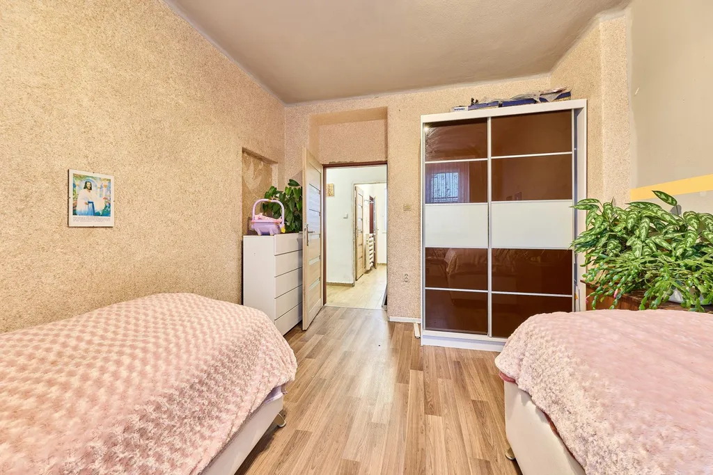 Dispozice bytu: chodba 6,72 m2, koupelna 2,62 m2, toaleta 0,91 m2, spíž 0,92 m2, obývací pokoj 23,16 m2, kuchyně 7,81 m2, ložnice 12,87 m2, pokoj 12,22 m2. Vstupní chodba je prostorná, s moderními vestavěnými skříněmi, koupelna má sprchový kout, umyvadlo, zrcadlo a je s prostorem pro pračku. Toaleta je samostatná a s oknem. Samozřejmě nechybí plastová okna, která mají výborné termoizolační vlastnosti a zabraňují ztrátám tepla. Byt se prodává částečně vybavený, bez elektrospotřebičů. Vytápění i ohřev vody je zajišťováno dálkově. Energetický štítek bude dodán, prozatím uvádíme třídu G.