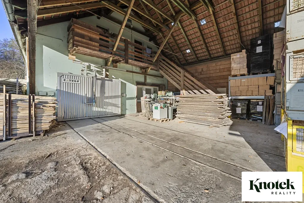- SAMOSTATNÁ HALA s užitnou plochou 178,32 m2. Hala má samostatný vstup a také posuvná vrata s možností vjezdu nákladního auta (sv. v. 3,8 m). V současnosti je hala využívaná jako truhlářská dílna.