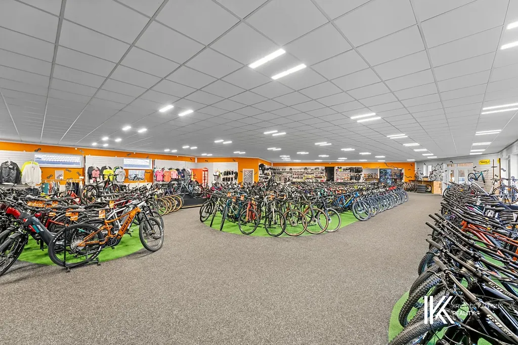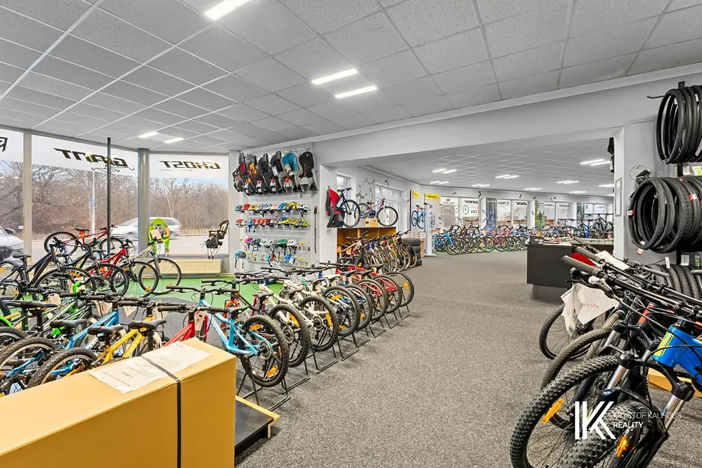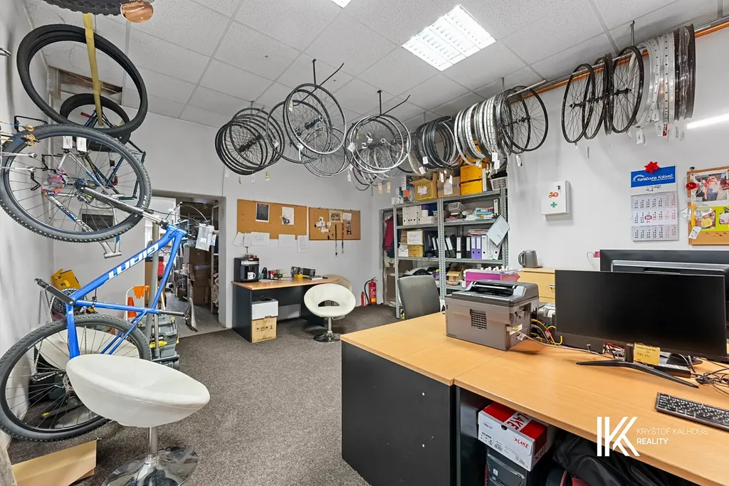 Přízemí nabízí rozsáhlou komerční část o užitné ploše cca 623 m². Hlavní prodejní plocha je řešena jako otevřený prostor cca 410 m2 bez podpěrných sloupů a je vhodná pro showroom, prodejnu či jiný podnikatelský provoz. V zadní části navazují kanceláře, sklady, servisní prostory, sociální zázemí a kuchyňka. Na konci přízemí se nachází chodba se schodištěm a samostatným zadním vstupem, umožňujícím oddělený přístup do obytné části.