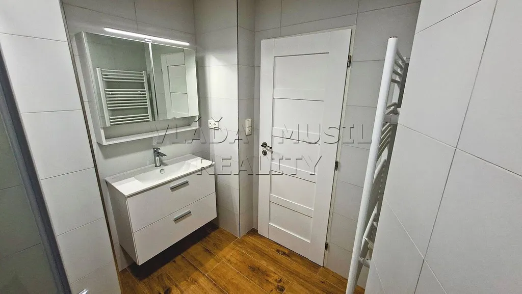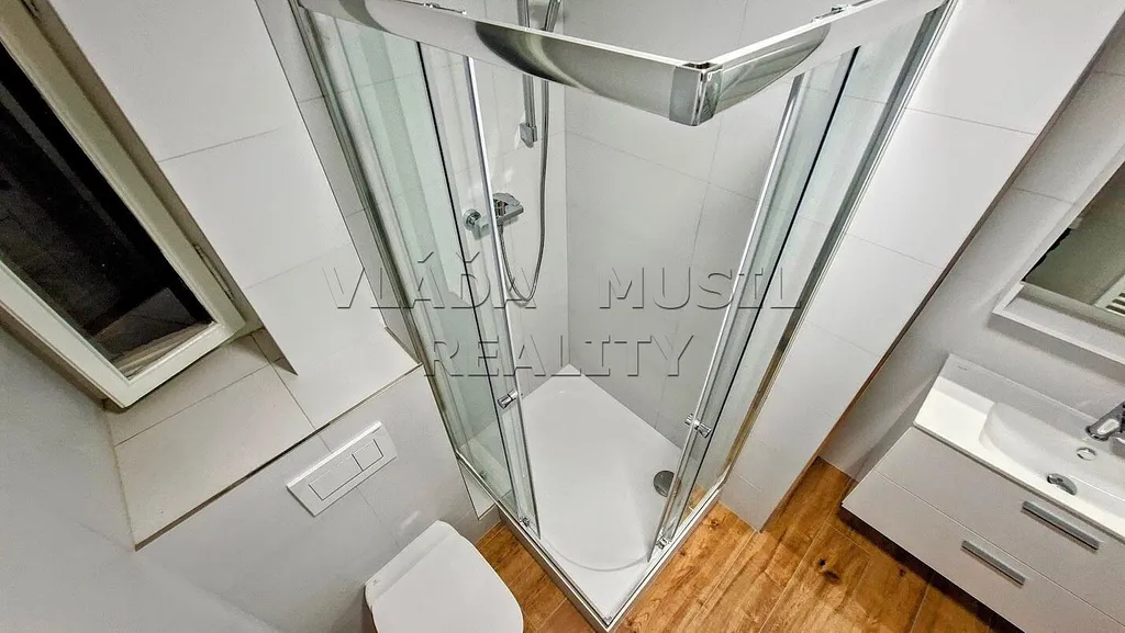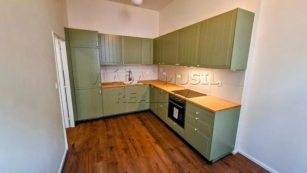 Nabízíme k pronájmu velmi pěkný nově kompletně zrekonstruovaný byt 1+1 v Praze 8 (Libeň), ulice Novákových - kousek od stanice metra "Palmovka". Byt o celkové rozloze 41 m² se nachází ve druhém patře cihlového domu. Tvoří ho vstupní předsíň, pokoj, kuchyň a koupelna s toaletou. V bytě byla právě dokončena nákladná kompletní rekonstrukce = vše je nové – rozvody, okna, plovoucí podlahy a dlažba, omítky, interiérové i vstupní dveře, koupelna se sprchovým koutem a toaletou a další. Nad koupelnou je velký úložný prostor. Teplou vodu zajišťuje bojler, vytápění přímotopy. Nové je také veškeré vybavení bytu. Nová kuchyňská linka je vybavena varnou deskou, el. multifunkční troubou, digestoří, vestavnou myčkou nádobí, velkou lednicí s mrazákem a pračkou. V koupelně je velké umyvadlo se skříňkou, zrcadlo s osvětlením, sprchový kout s posuvnými dveřmi a toaleta. V celém bytě je osvětlení.