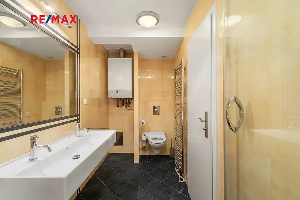 Všechny obytné místnosti v obou patrech jsou vybaveny klimatizačními jednotkami, které zajišťují dokonalé pohodlí bez ohledu na počasí a roční období. Vytápění bytu prostřednictvím radiátorů a ohřev teplé vody zajišťuje plynový kotel, což poskytuje efektivní, spolehlivý a komfortní provoz po celý rok.