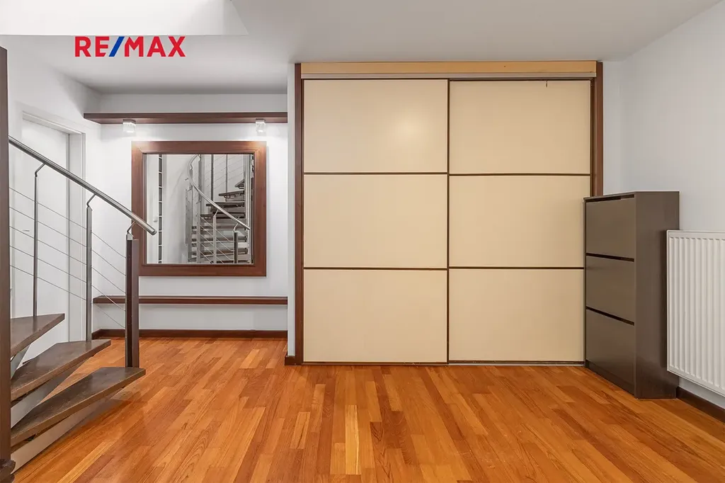 Tento mezonetový byt se nachází v 6. a 7. nadzemím podlaží bytového domu s výtahem. K ploše bytu 107 m2 dále náleží vlastní terasa 6 m2 a zděný sklep v suterénu domu o výměře 6 m2.