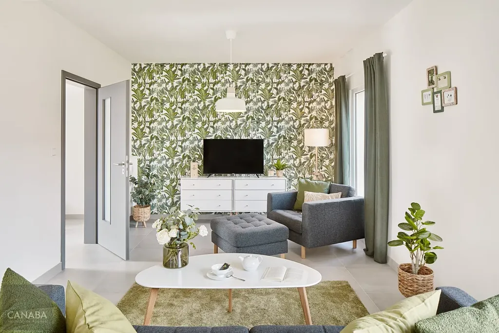 Bohatý vnitřní prostor zahrnuje v přízemí obývací pokoj s prakticky odděleným kuchyňským koutem a v patře ložnici a 2 dětské pokoje. Součástí rodinného domu je i samostatná toaleta a samostatná koupelna.
