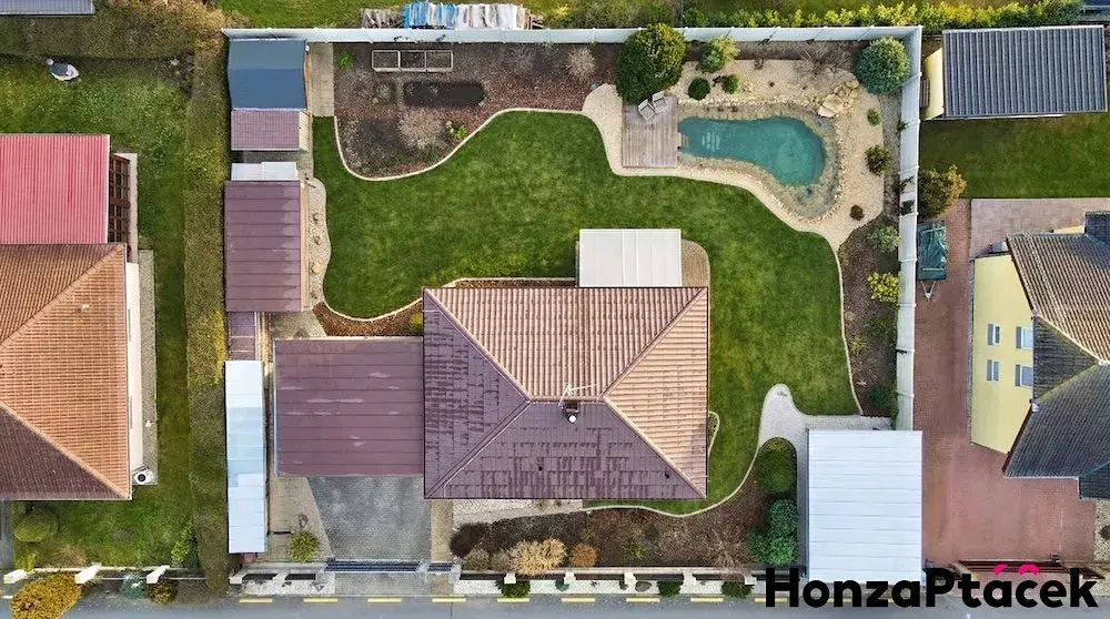 Na zahradě se nachází koupací přírodní jezírko s vodopádem (2025), dva zahradní domky, dřevník, zastřešené stání pro dvě auta a pergola přizpůsobená pro obytný vůz. Na okraji pozemku je zahradní domek s dílničkou a druhý jako sklad nářadí. Naj zahradě najdete - okrasné dřeviny (Španělská jedle, Kalina vrásčitá, Blýskavky, Bobkovišeň, Borovice, Kalina Kilimandjaro, Cesmína, Stálezelené magnolie, Variegata - Svída, Brslen, Buk červený - převislý), ovocné stromy a keře (meruňka, broskev, švestka a keře - angrešt, višeň, rybíz, ostružina), nový trávník, vyvýšené záhony tvořící příjemné zázemí pro odpočinek i drobné zahradničení. Zahrada byla v uplynulém roce kompletně revitalizována. Součástí prodeje je také zásoba dřeva na několik topných sezón - cca16ccm.