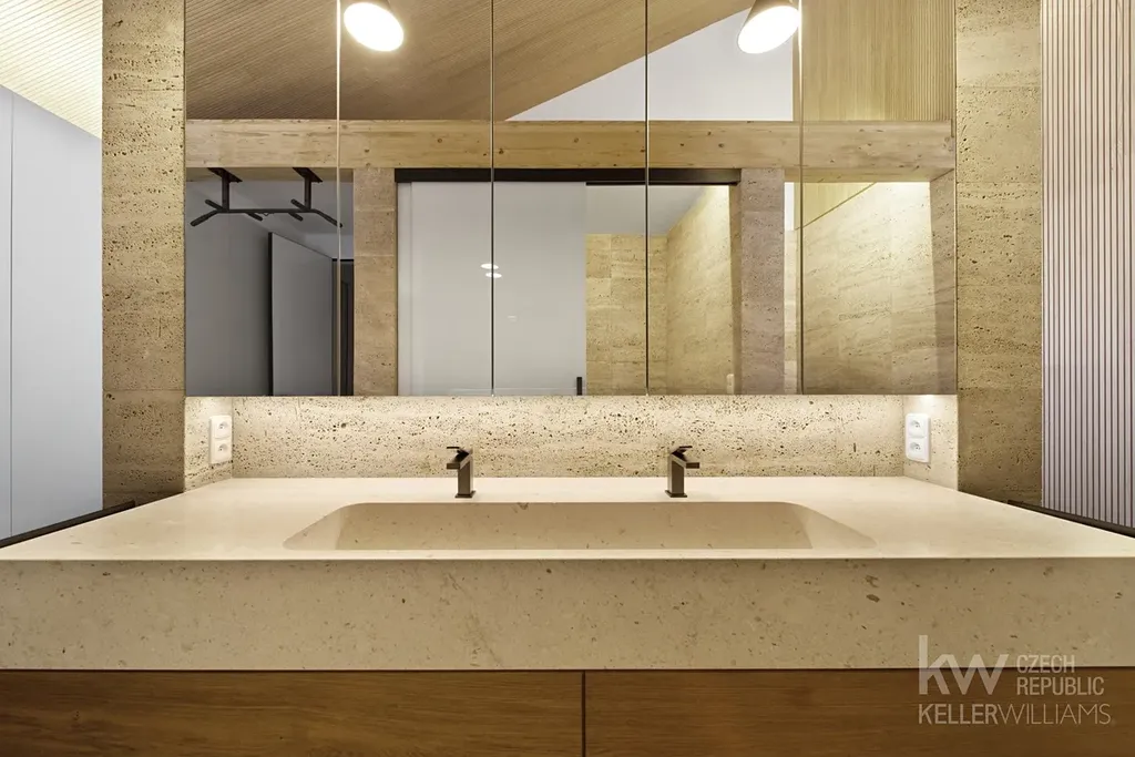 Ložnice nabízejí maximální komfort a soukromí, hlavní ložnice má přímý vstup na balkon. V koupelnách jsou použity designové baterie Gessi, vana ovládaná přes aplikaci a luxusní obklady.