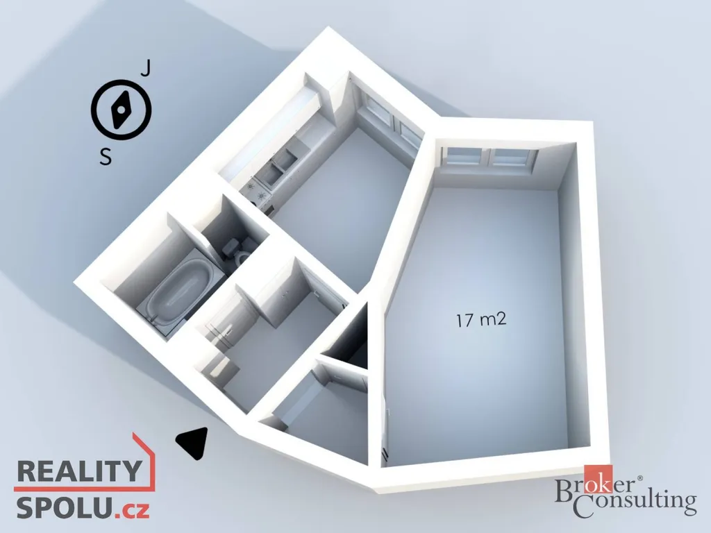 Pronajmeme pěkný byt pro individualisty, kteří se potřebují odlišit nebo kteří preferují jiné geometrické tvary než ty pravidelné. Tohle je samozřejmě legrace, ale teď vážně. Byt se nachází téměř nahoře s výhledem do vnitrobloku. Disponuje úplně novou kuchyňskou linkou vybavenou myčkou a celkově novou elektroinstalací. Kromě zabudovaných úložných prostor přímo v bytě je k dispozici klasicky i sklepní kóje a také výtah. V domě je zajištěn úklid společných prostor.