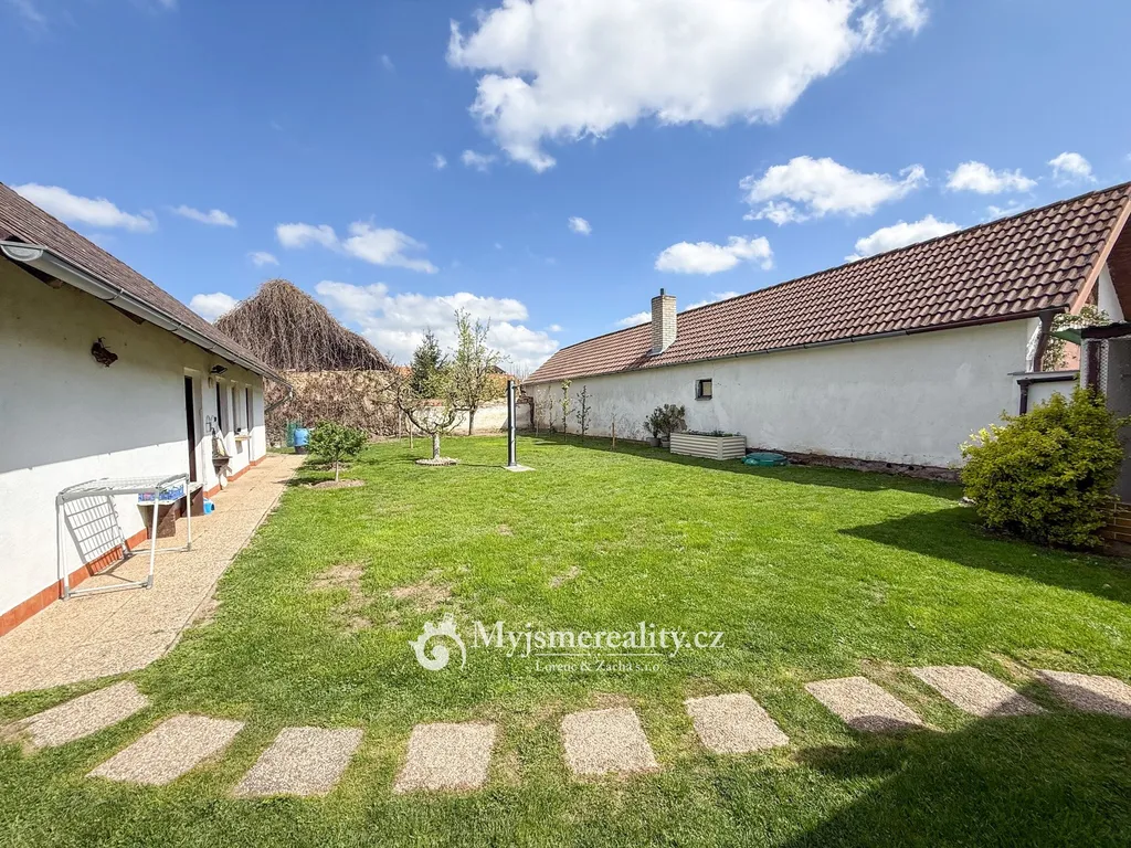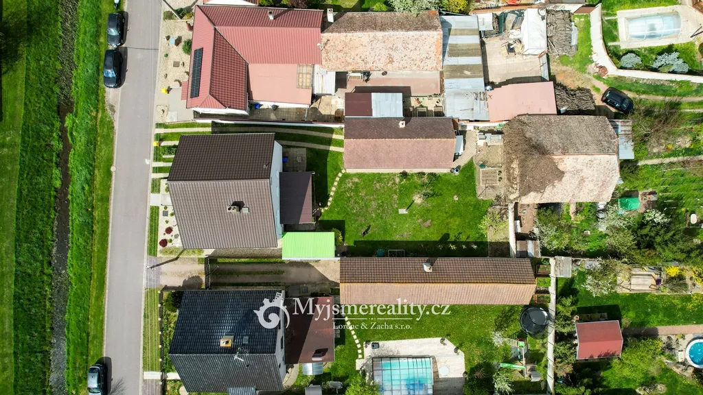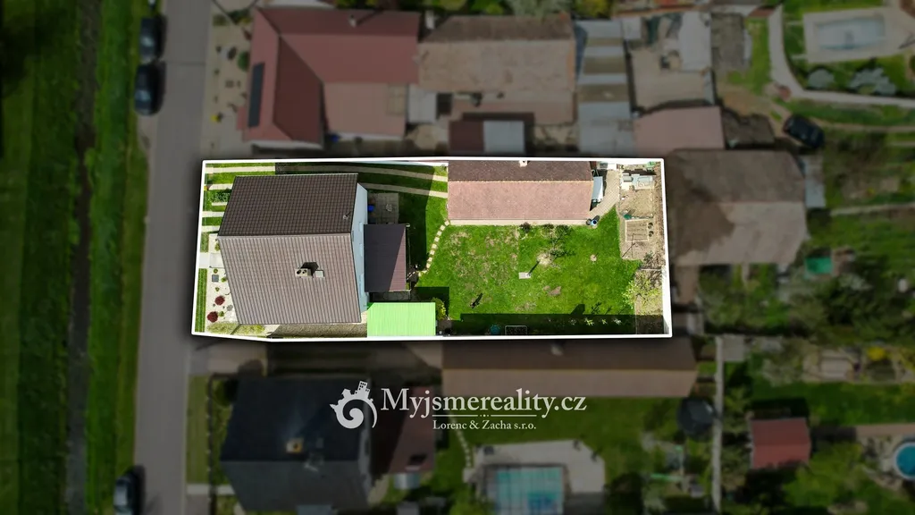 Pozemek o celkové výměře 746 m² poskytuje dostatek soukromí i prostoru pro relaxaci. Součástí jsou dvě garáže, částečné podsklepení domu a samostatná hospodářská stavba. Za domem se rozprostírá rovinatá zahrada o velikosti 533 m², ideální pro vytvoření klidové zóny s pergolou, bazénem či okrasnou zahradou.