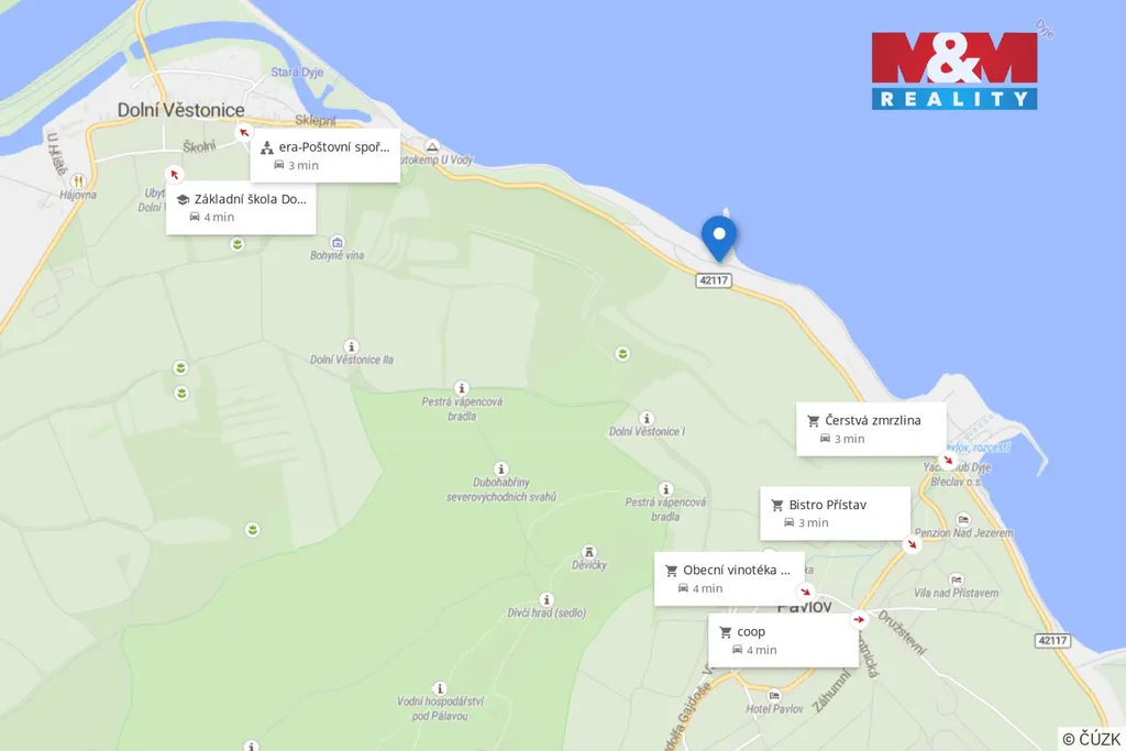 Nabízíme k prodeji jedinečný pozemek v bezprostřední blízkosti vodní nádrže Nové Mlýny nacházející se v obci Dolní Věstonice. Pozemek o výměře 604 m² ležící přímo pod svahy Pálavských vinic nabízí klidné prostředí s dostatkem soukromí, obklopené přírodou a typickou atmosférou jižní Moravy.