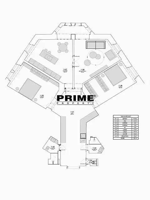 Byt je zařízený. Dispozice bytu: vstupní hala s velkými vestavěnými skříněmi, obývací pokoj s arkýřem, samostatná, plně vybavená kuchyň se spotřebiči (sklokeramická varná deska, elektrická trouba, myčka, mikrovlnná trouba, lednice s mrazákem a lednička na víno), 2 ložnice s vestavěnými skříněmi, 2 koupelny (jedna se sprchovým koutem, umyvadlem a toaletou a druhá se sprchovým koutem a umyvadlem) a samostatné WC.