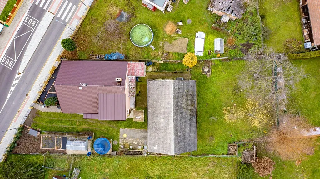 Celková výměra pozemků činí 1 029 m2. K domu náleží také prostorná stodola o zastavěné ploše 115 m2, která aktuálně slouží pro parkování vozidel, ale nabízí široké možnosti využití: od dílny přes skladovací prostory až po zázemí pro podnikání či volnočasové aktivity.