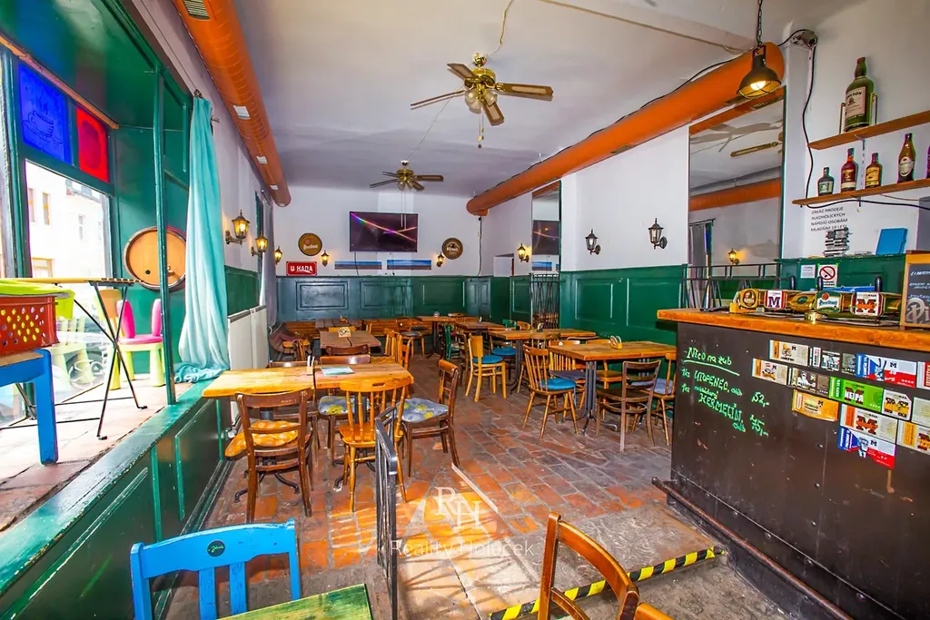 Přímo z ulice vstoupíte do hospůdky Caffé u Hada, která má následujícími prostory: 46m2 k sezení + při hezkém počasí je možnost posezení venku, přípravna 10 m2, šatna pro personál 4,5m2, toalety 7,7m2 a sklep 9m2. Vytápění zajišťuje jeden rok starý kondenzační kotel. Provoz zařízení je i se zahrádkou zcela bezproblémový ke svému okolí.
