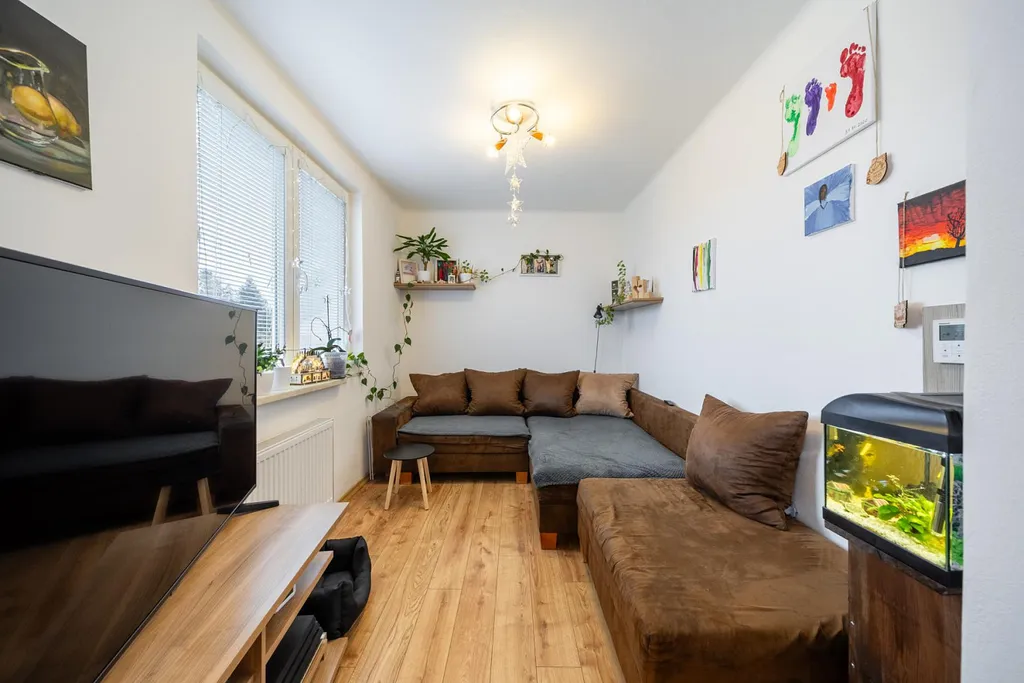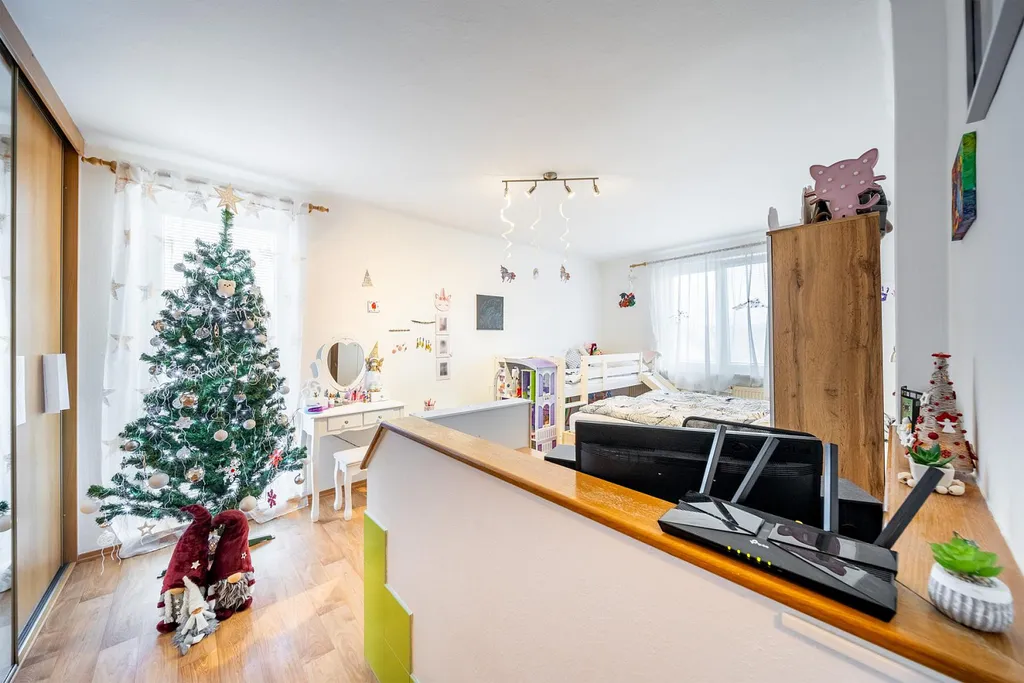 Dispozice: vstupní chodba, kuchyň spojená s obývacím pokojem, ložnice, dětský pokoj, samostatné WC a koupelna.