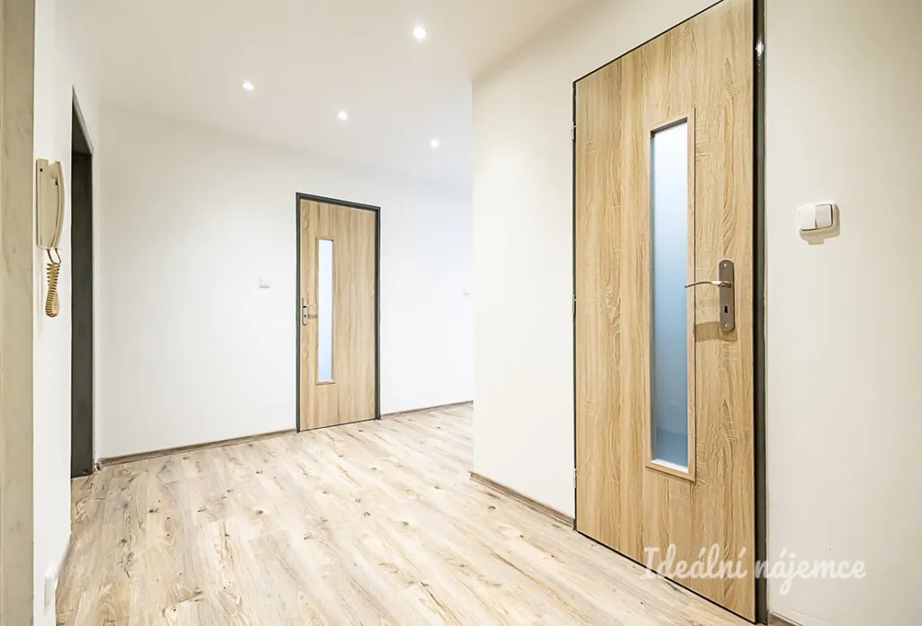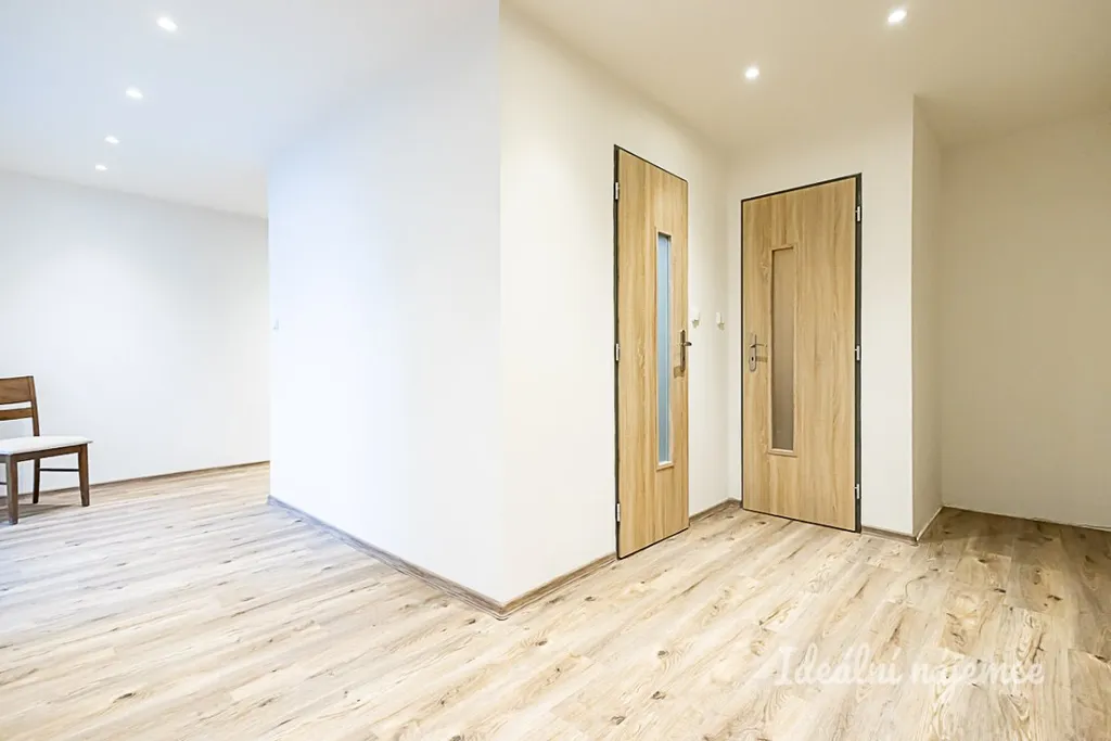 Byt prošel kompletní rekonstrukcí a nabízí se volný k zařízení dle vlastních představ. Nová kuchyňská linka disponuje lednicí s mrazákem, myčkou, elektrickou troubou, varnou deskou, mikrovlnnou troubou a digestoří. Obývací část je nezařízená, stejně jako obě ložnice. V koupelně je sprchový kout a koupelnová skříňka se zrcadlem. Toaleta je umístěna samostatně.