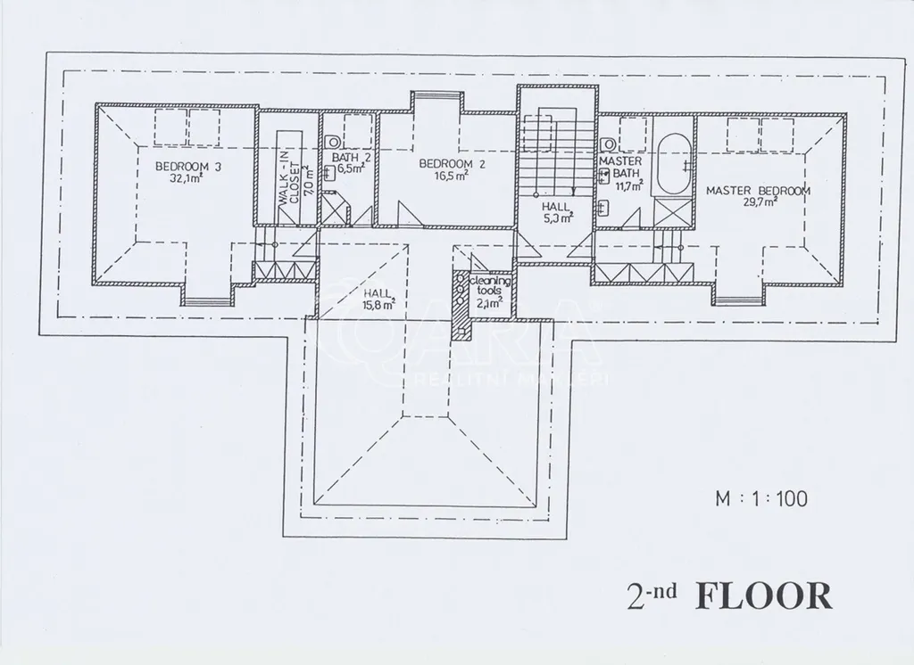 Samotný dům má zastavěnou plochu 264 m2, podlahovou plochu 417 m2, dvě garážová stání a rovinatou zahradu s velikostí 1000 m2. Vnitřní dispozice domu jsou 6+1. Největší je obývací pokoj s krbem a vysokým stropem, je k dispozici i čtveřice koupelen. Firma zde může najít klidné zázemí naprosto odlišné od klasických kancelářských budov. Neváhejte, ozvěte se a rádi zorganizujeme prohlídku.