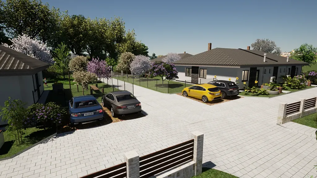 Parcela je umístěna v lokalitě, která byla projektována jako rezidenční bydlení, které zahrnuje 3 parcely na kterých jsou umístěny dva přízemní dvojdomky a jeden samostatný přízemní RD. Vjezd z hlavní silnice na parcely lze uzavřít branou a všechny parcely tak společně oddělit, čímž je docíleno uzavřené rezidenční lokality.