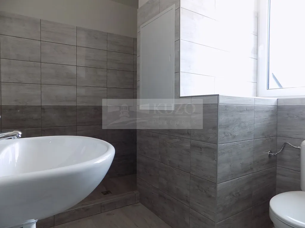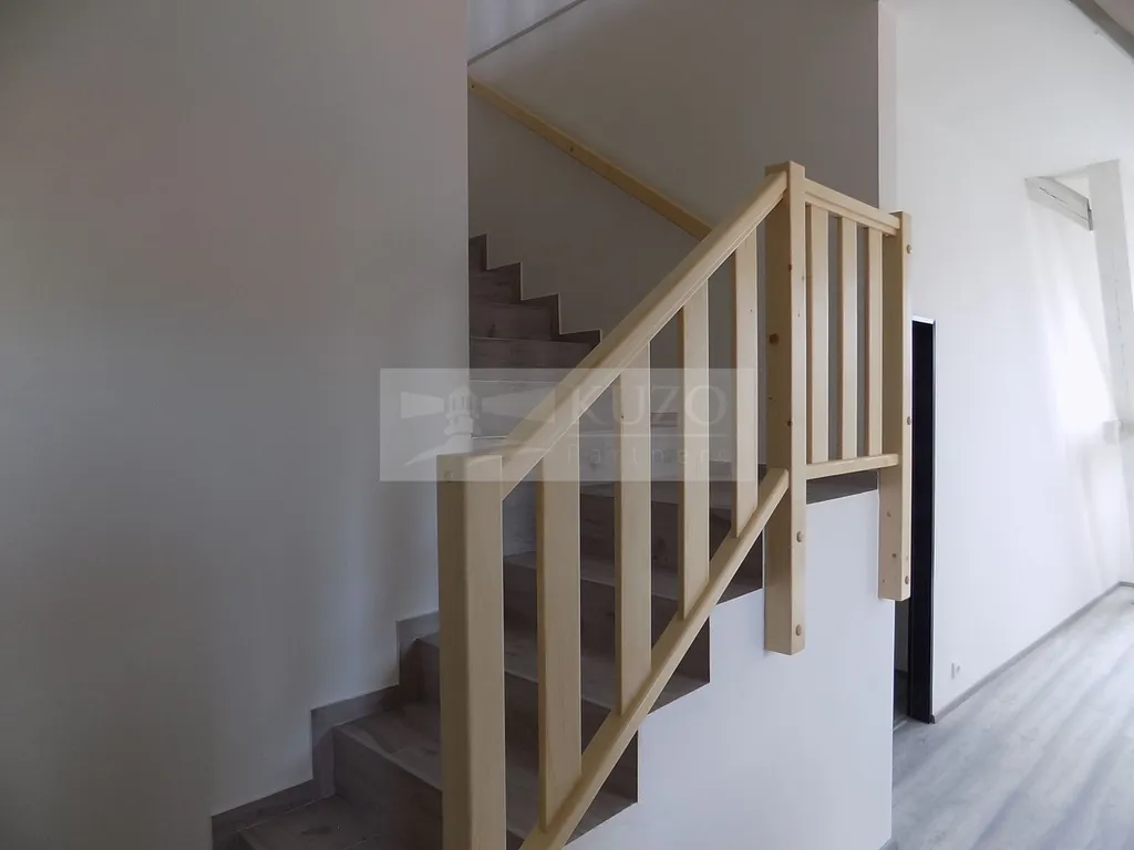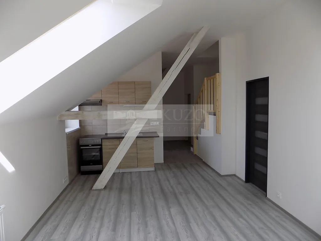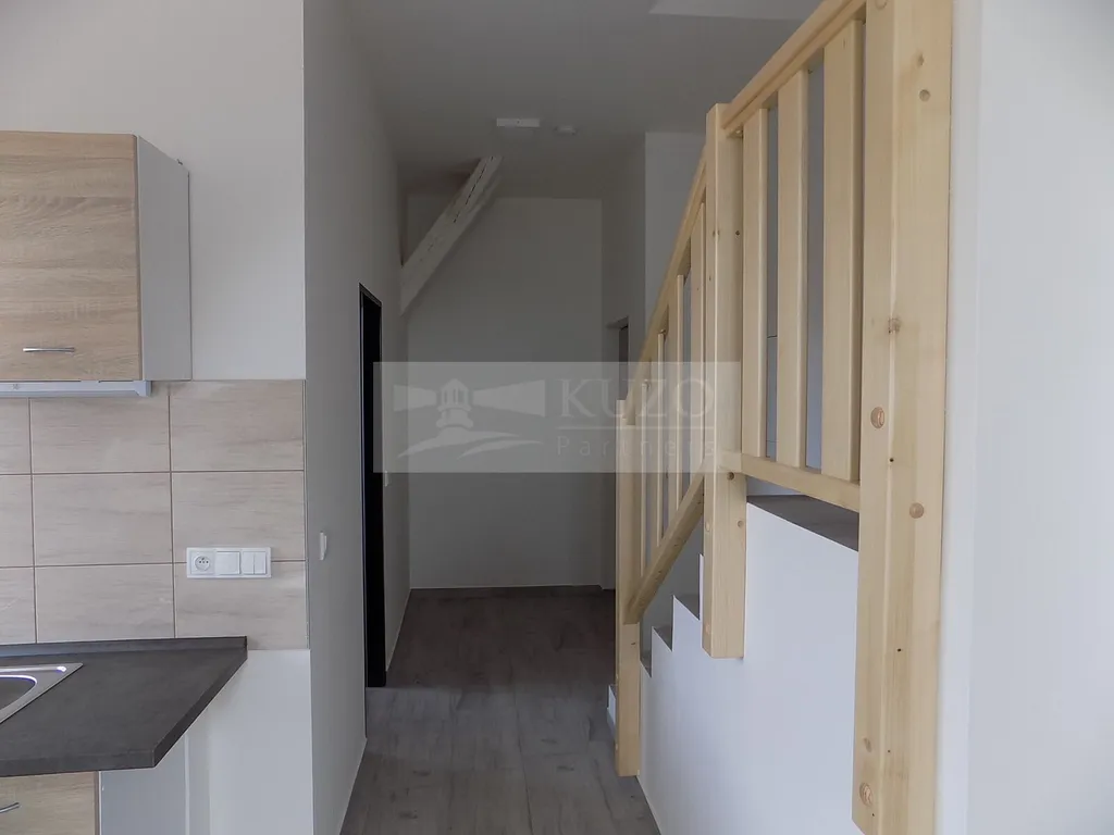 KUZO Partners s.r.o. Vám zprostředkují exkluzivně možný pronájem novostavby atypického mezonetového bytu 2+kk v nově zrekonstruovaném bytovém domě, bývalém Špýcharu, který se nachází v těsné blízkosti centra města Dobříš. Byt v OV o celkové podlahové ploše 58 m2 se nachází ve čtvrtém nadzemním podlaží čtyřpatrového cihlového domu s výtahem a bezbariérovým přístupem. Nestandardní členění bytu je následující: vstupní chodba, odtud vlevo vcházíme do kuchyně s komorou, novou kuchyňskou linkou a sporákem spojené s jídelním koutem a obývacím prostorem, odtud po schodech vystoupáme do atypického podkroví, ložnice, orientované na západ s famózním výhledem na město a okolí. Z chodby vpravo vstoupíme do samostatné koupelny se sprchovým koutem, umyvadlem, koupelnovým radiátorem a WC. Bytový dům, který disponuje deseti bytovými jednotkami, prošel nadstandardní kompletní rekonstrukcí a rozhodně uspokojí náročné klienty s požadavky vysokého standardu bydlení. Parkování je možné v těsné blízkosti domu v neplacené zóně. V blízkosti domu je veškerá občanská vybavenost. Nájemné včetně poplatků činí měsíčně 19500,- Kč ( 16000,- Kč nájemné a 3500,- Kč záloha služby/ 2 osoby). Vratná kauce činí 39000,- Kč. Ostatní informace v RK.
