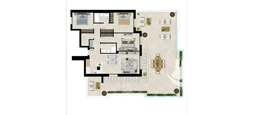 Na pobřeží Costa del Sol vzniká rezidenční projekt, který umí spojit výhledy na moře, moderní styl a pohodlí, díky kterému se člověk cítí jako doma od prvního dne. Tento exkluzivní penthouse v nejvyšším patře nabízí 111 m² vnitřního prostoru, tři ložnice, tři elegantní koupelny a světlý obývací pokoj propojený s moderní kuchyní. Dominantou bytu je soukromá terasa o 109 m² orientovaná na západ, odkud je vidět moře, hory i západy slunce, které by klidně mohly viset v galerii. Je to prostor, kde se dá celý rok relaxovat, grilovat nebo jen nechat čas plynout u sklenky vína.
