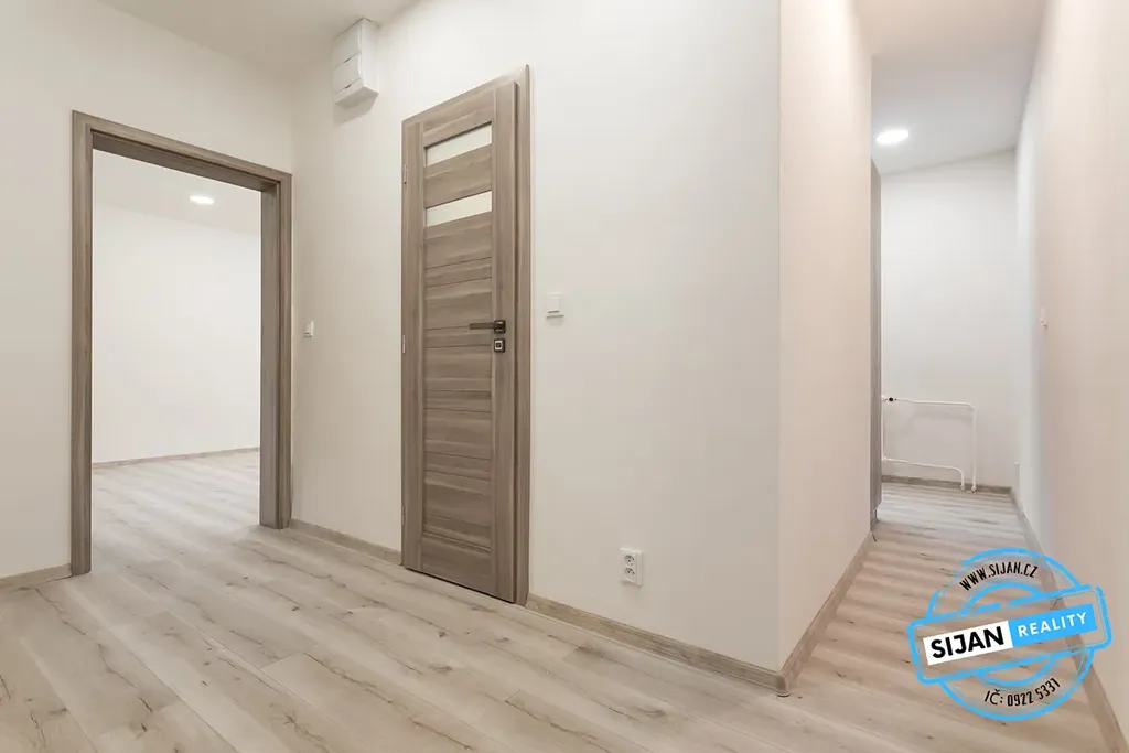 V celém bytě jsou podlahy bez přechodových lišt v jedné úrovni, interiérové dveře Porta, LED stropní osvětlení v sádrokartonových podhledech, nové štuky a bezpečnostní vstupní dveře.