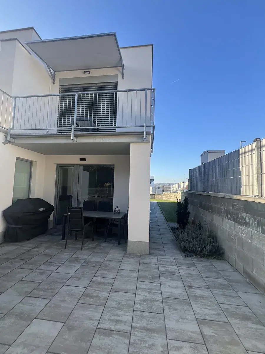 Součástí pronájmu je kryté parkovací stání, sklep o výměře 2,3m2 a terasa včetně zahradního nábytku a grilu. Dále možnost využití společných prostorů u domu.