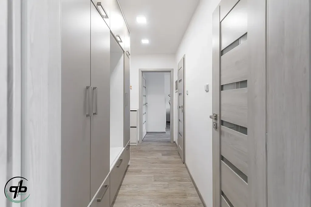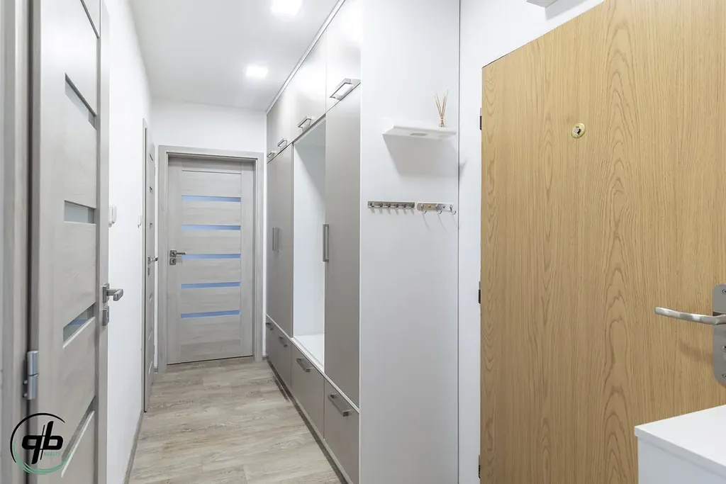 Byt je dispozičně řešen dvěma neprůchozími pokoji, kuchyní propojenou s obývacím pokojem, koupelnou se sprchovým koutem a samostatným WC. Rekonstrukce bytu zahrnovala výměnu oken, nové vinylové podlahy, veškeré rozvody instalací, zděné jádro, kuchyň s vestavěnými spotřebiči (elektrická trouba, mikrovlnná trouba, indukční deska a digestoř, myčka). Vybavení bytu je částečně součástí prodeje (dle dohody). K bytu náleží sklepní kóje, k dispozici společná kolárna/kočárkárna. V mezipatře je společný balkón, který je možné majitelem bytu využívat.