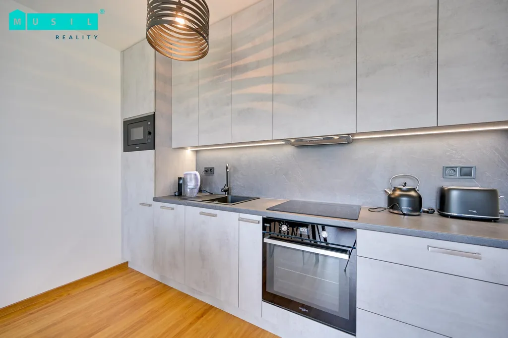 Pronájem krásné kompletně zařízené novostavby bytu s balkónem, sklepem a parkovacím stáním nacházející se na ulici Věry Pánkové v Olomouci. Byt má dispozici 2+kk, jeho výměra činí 58 m2 + sklep 5,1 m2, je umístěn ve 2. NP bytového domu s výtahem. Bytová jednotka zůstává kompletně zařízena. Luxusní a praktická kuchyňská linka je vybavena vestavěnými spotřebiči: indukční varná deska, horkovzdušná trouba, digestoř, mikrovlnná trouba, myčka nádobí. Obývací pokoj je zajištěn sedačkou a televizní sestavou vyrobenou na míru. V koupelně je k dispozici prostorný sprchový kout, umyvadlo se skříňkou, zrcadlo a WC. Samostatná ložnice disponuje šatní skříní, která nabídne dostatek úložného prostoru a manželskou postelí. Prostorný balkón s výhledem do zeleně, skvěle poslouží pro relaxaci po náročném pracovním dni v letních měsících. Celkový dojem nemovitosti působí velmi vkusným a luxusním dojmem. Jedná se o novostavbu bytu, který čeká na svého nového nájemníka. Parkovací garážové stání se pronajímá za příplatek 1.000 Kč. Toto velmi hezké klidné bydlení se nachází v širším centru města Olomouce v těsné blízkosti relaxační zóny řeky Moravy. Výborná dopravní dostupnost na sjezdy na dálnici. Cena 18.500 Kč/měsíc. Cena je uvedena bez záloh na služby, které činí cca 2.800 Kč/měs./elektřina přepisem na nájemníka, parkovací místo za poplatek 1.000 Kč/měs, jistota ve výši dvou měsíčních nájmů. Provize RK jeden měsíční nájem + DPH. Volný od 1.3.2026. Doporučujeme prohlídku.