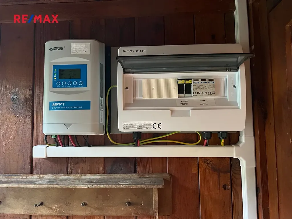 Romantický interiér nabízí obývací místnost s kuchyní a kuchyňskou linkou, stolem a židlemi, rozkládací gauč, krbová kamna. V pokoji se budete cítit jako u babičky, nebo jako na francouzském venkově... Manželská postel, obrázky, petrolejka, vůně přírody otevřeným oknem na terasu... Užitná plocha 25 m2, přivedena voda z IBC nádrže, na střeše solární panely s baterií a rozvodem po chatě na základní svícení a spotřebiče. U chaty je zbrusu nová latrína...