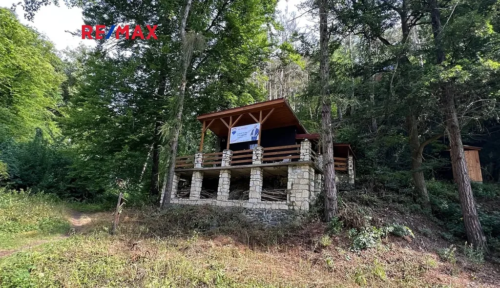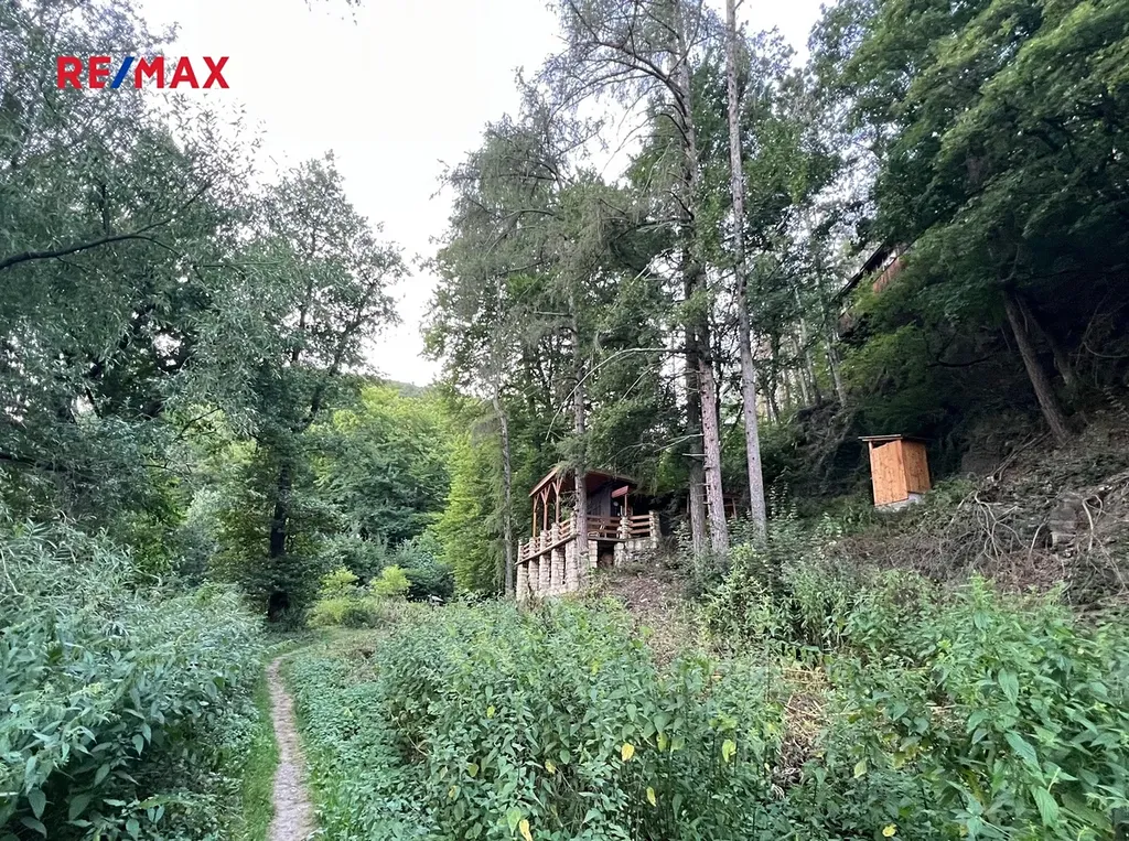 Vlastněný pozemek pod chatou je 56 m2, spoluvlastnický podíl na okolních pozemcích je 1/13 z rozlohy 70 148 m2, tedy 5 396 m2. A součástí prodeje je též věcné břemeno na pozemcích obce Zbečno. Jako zahrada se užívá cca 200 m2 v okolí chaty.