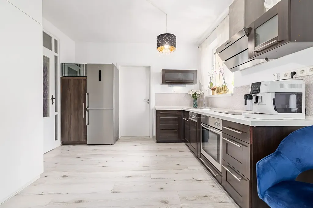 Velmi oblíbená dispozice 3 + kk předurčuje bytovou jednotku ke komfortnímu bydlení pro jednotlivce, pár, ale vejde se i rodina s dětmi. Interiér je vybaven moderní kuchyňskou linkou včetně elektrické varné desky, vestavěné elektrické trouby, myčky na nádobí a digestoře. Vytápění je zajištěno plynovým kotlem, který zajištuje i ohřev vody.