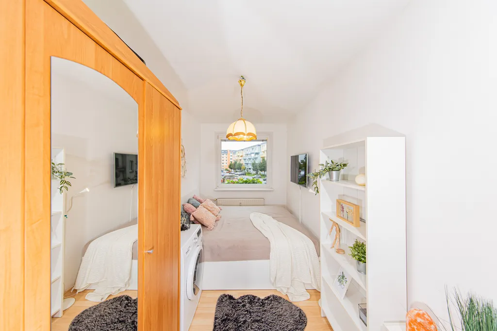 Pronájem slunného panelového bytu 2+1 na ulici Fischerova v Olomouci.