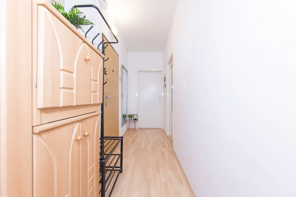 Ložnice je vybavená dvěma šatními skříněmi, knihovnou, postelí a televizí. Prostorná vstupní chodba s velkým zrcadlem, skříní na boty a stylovým věšákem Vás přivítá příjemnou atmosférou. Z chodby máte přístup do ložnice, obývacího pokoje a koupelny. Koupelna je vybavena vanou, ideální pro relaxační koupele během chladných zimních večerů.