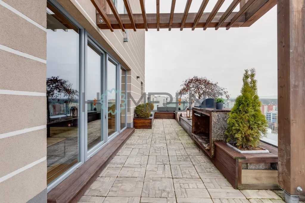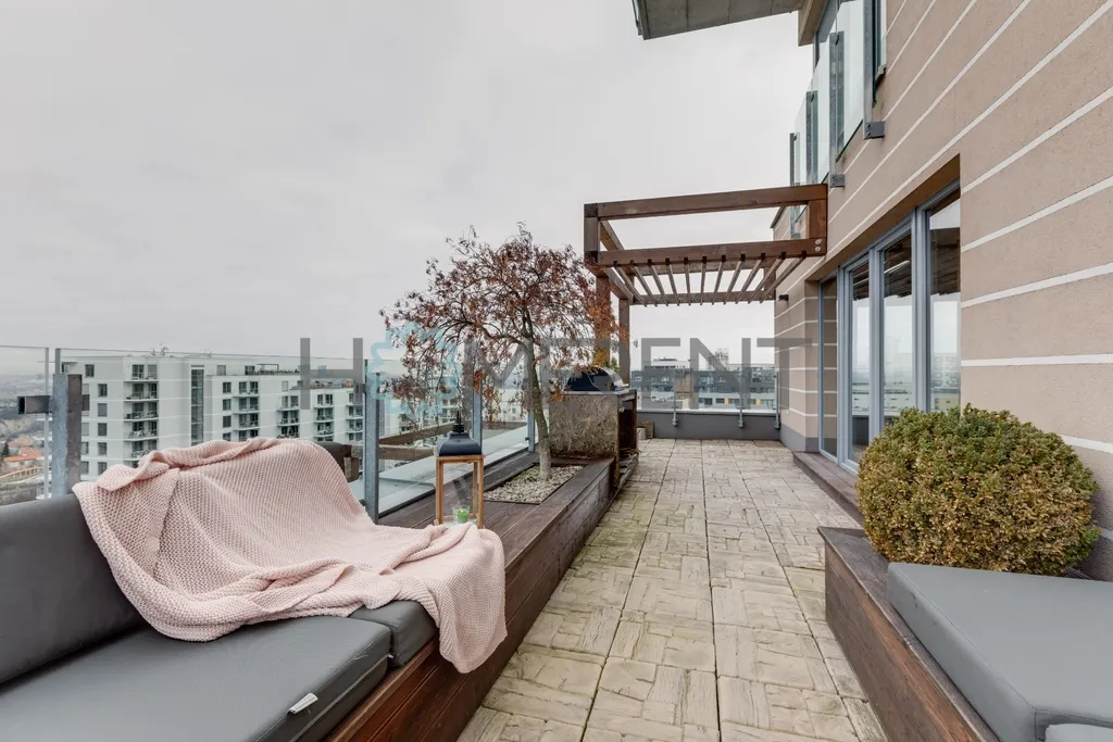 Byt o podlahové ploše 68 m² se nachází v 6. patře moderního domu s výtahem. Jeho hlavní předností je velkorysá terasa o velikosti 30 m² poskytující dechberoucí výhled, vybavená grilem, která nabízí dostatek prostoru pro posezení, relax i letní večery s přáteli.