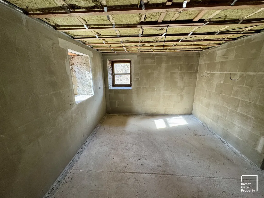 Zastavěná plocha nemovitosti činí 168 m2. Plocha zahrady je 1.028 m2. Momentálně objekt prochází rekonstrukcí – jedna část domu je zrekonstruována na společenskou místnost se samostatným vstupem. Hlavní část domu bude obsahovat 2 ložnice, velkou kuchyni s kachlovými kamny a koupelnu. V podkroví byla v plánu vybudovat další velká ložnice se vstupem zvenčí budovy. V rámci rekonstrukce jsou hotovy základní rozvody elektřiny, vody i odpadu. Dokončení rekonstrukce již bude na novém majiteli – má tak možnost ještě ovlivnit dispozici i finální osobní podobu. Objekt je napojen na elektřinu, obecní vodovod a odpad je sveden do jímky.