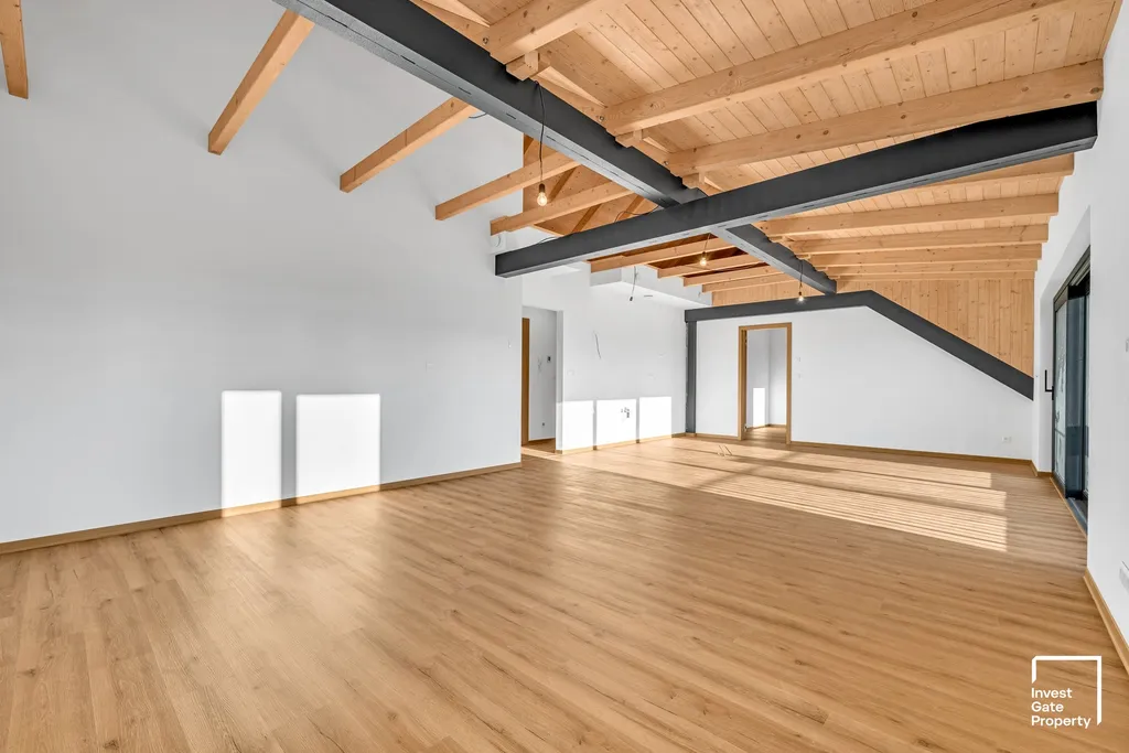 Byt má v současném stavu dispozici 3+kk a celkovou plochu 124m2. Nachází se v 2. patře bytového domu. Hlavní obytný prostor má otevřenou dispozici – obývací pokoj s kuchyňským koutem má celkovou výměru 48m2, má otevřený prostor do podkroví, kde může vzniknout prostor pro hraní vašich dětí nebo místo pro spaní. Pokud by tato dispozice nevyhovovala je možné instalovat dělící příčku v obývacím prostoru a vytvoří uzavíratelná ložnice a dispozice se změní na 4+kk. Vedle vstupního schodiště je galerie o výměře 9m2, která může fungovat třeba jako pracovna, která je oddělena od samotného prostoru bytu, takže vaše případné obchodní schůzky nenaruší privátní část bytu.
