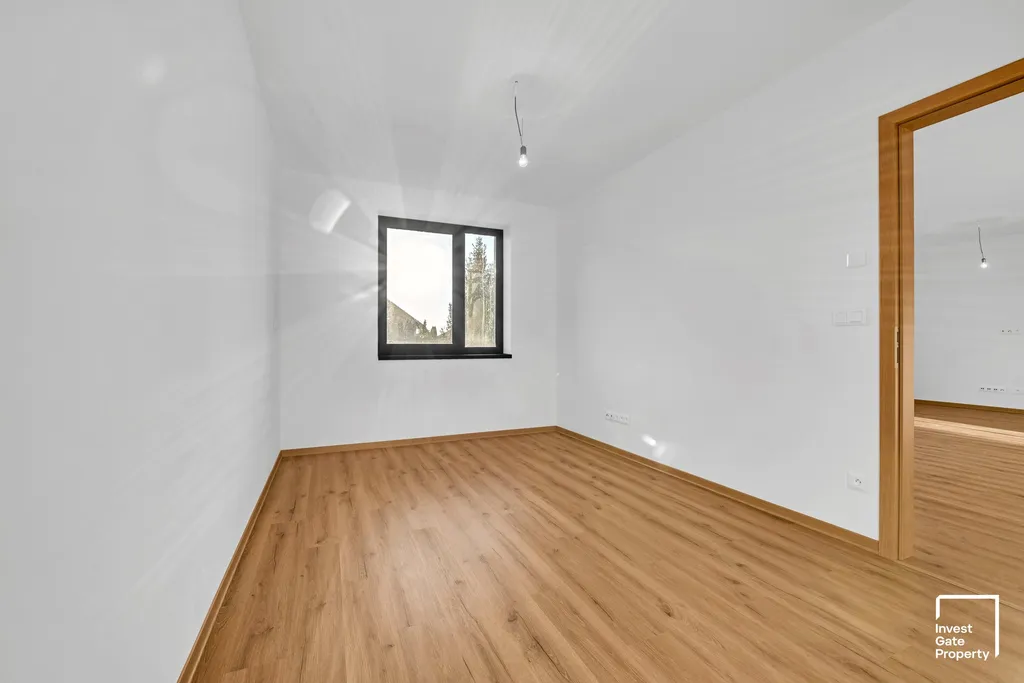 Byt má dispozici 4+kk o celkové ploše 124m2 a nachází se v 1. patře bytového domu. Bytu dominuje prostorný obývací pokoj s kuchyňským koutem, ze kterého je přímý vstup na balkon o výměře 13m2. K bytu dále patří komora o výměře 9m2 na stejném podlaží jako je byt. V ceně bytu získáte dále 2 parkovací místa před domem a zahradu o výměře cca 100m2.