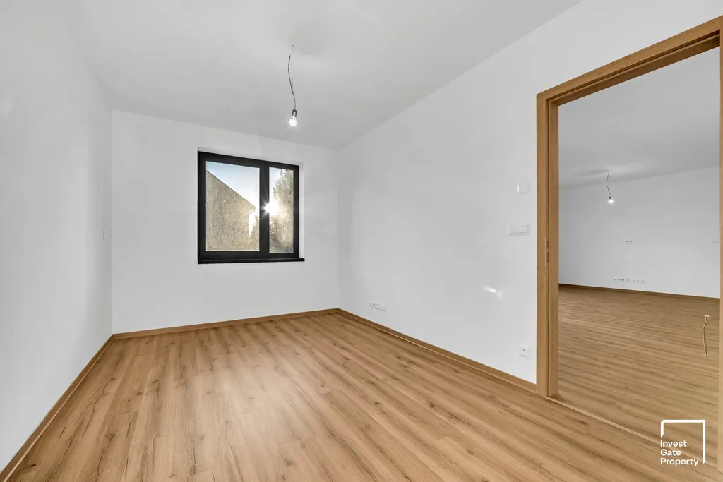 Byt má dispozici 4+kk o celkové ploše 120m2. Bytu dominuje prostorný obývací pokoj s kuchyňským koutem, ze kterého je přímý vstup na terasu a vlastní zahradu. Byt se dále skládá ze 3 ložnic, koupelny, WC a praktické šatny. K bytu náleží ještě komora před vstupem do bytu, pro uložení např. vašich sportovních potřeb. V ceně bytu získáte dále 2 parkovací místa před domem a zahradu o výměře cca 100m2.