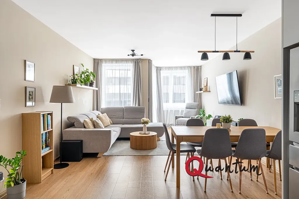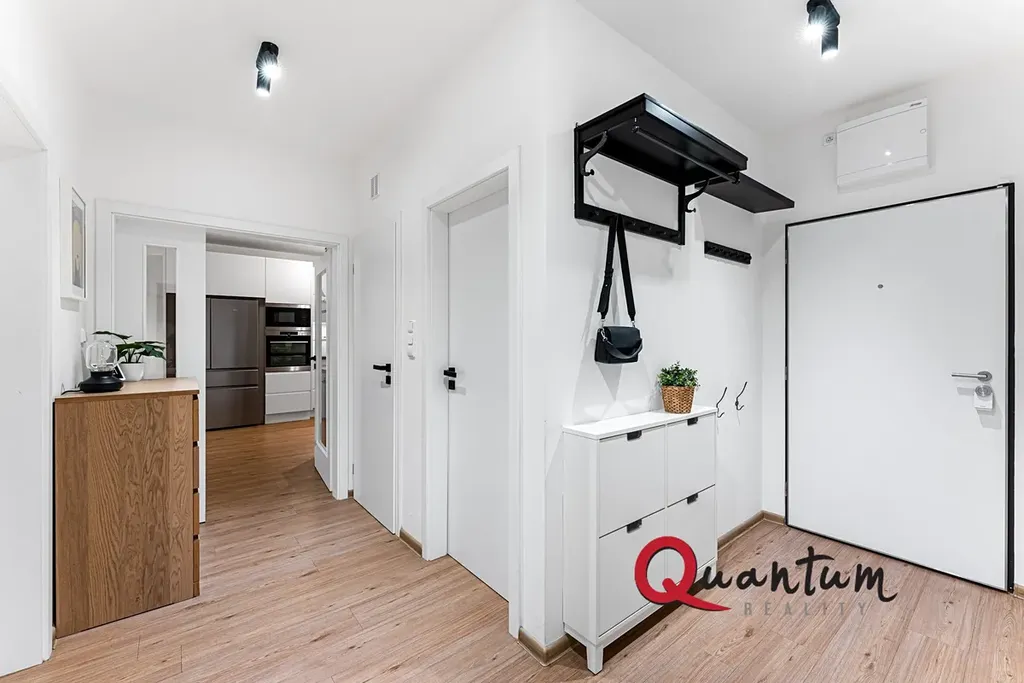 Exkluzivní nabídka moderního bytu 3+kk - 89 m² s vlastní terasou 42 m² a garážovým stáním - Praha 10 - Dolní Měcholupy - ulice Honzíkova. Prostorný byt s racionální vnitřní dispozicí je situovaný do 1. nadzemního podlaží zděné novostavby bytového domu z roku 2020 v nově vzniklé rezidenční lokalitě Malý háj VII.na rozhraní Dolních Měcholup a Štěrbohol. Jednoduchá a ryze účelná dispozice bytu 3+kk zahrnuje dominantní obývací pokoj s kuchyňským koutem (36,4 m²) s výstupem na velkorysou terasu (41,9 m²), dále ložnici (15,3 m²), dětský pokoj (14 m²), koupelnu (5,5 m²), samostatnou toaletu, komoru a vše spojující vstupní halu. K bytu dále náleží vlastní nadstandardně široké garážové stání v přízemí domu. Jihozápadně orientovaný byt je velmi světlý, středový, situovaný do klidného vnitrobloku. Byt je elegantně a moderně zařízen - kuchyňská linka zn. Hanák včetně vestavěných spotřebičů, ložnice také od Hanáka s důmyslným nábytkem na míru, vestavěné skříně v chodbě bytu, bezpečnostní vstupní dveře NEXT, kvalitní vinylové podlahy, úložný prostor v komoře, kabelová televize, internet apod. Promyšlený interiérový design poskytuje kvalitní rodinné bydlení, maximální soukromí a bezpečí v klidném prostředí nově vzniklé rezidenční lokality v moderním bezbariérovém bytovém domě s čipovým vstupem a bezpečnostními kamerami. Kvalitní občanská vybavenost a výborná dopravní dostupnost je samozřejmostí, nadstandardem je místní bohatý komunitní život, sousedské a společenské akce. V docházkové vzdálenosti jsou obchody, restaurace, dětská hřiště, víceúčelové sportovní hřiště, škola, školka, autobusová zastávka Kardausova se spojením 8 min. na metro Depo Hostivař. V blízké budoucnosti je plánovaná nová základní škola či prodloužení tramvajové trati přímo v Malém háji. Byt je v osobním vlastnictví připravený k okamžitému nastěhování. Nízké měsíční poplatky. Velmi zajímavá nabídka moderního rodinného bydlení v žádané lokalitě Prahy za racionální konečnou cenu včetně vlastního garážového stání přímo v domě.