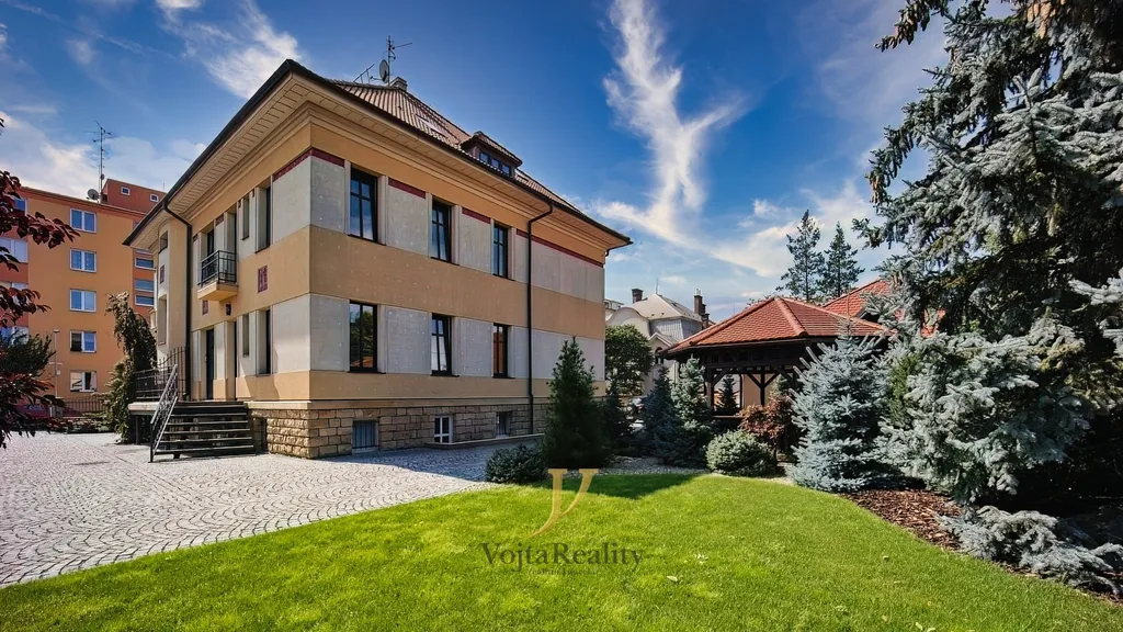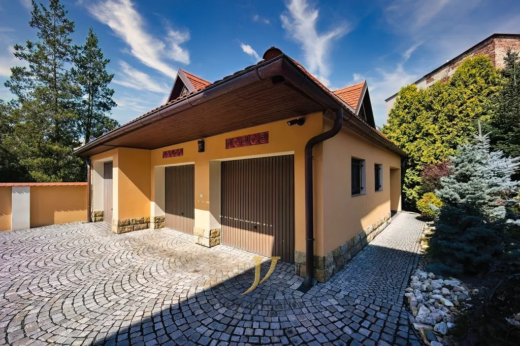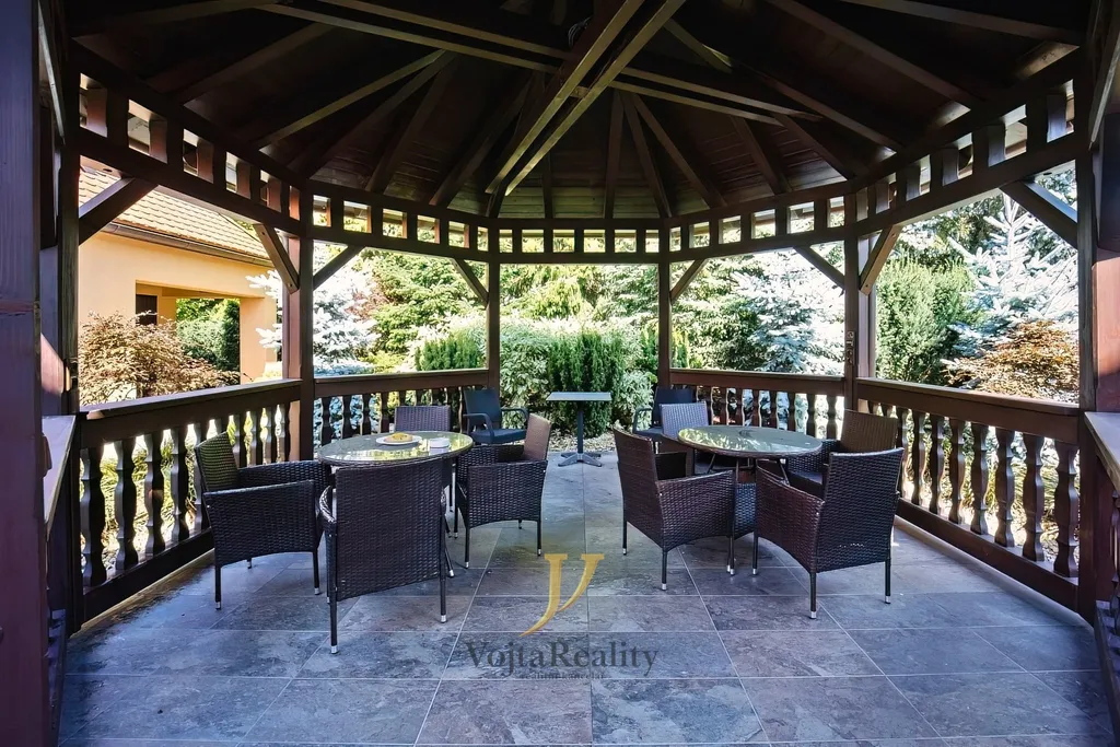 Byt je situován v krásné vile s rozlehlým, uzavřeným pozemkem, který poskytuje maximální soukromí a klid. Nájemníkům je k dispozici možnost využití nadstandardně řešeného venkovního altánu, zahrady určené k pasivnímu odpočinku a netradiční venkovní kuchyně s vlastním sociálním zázemím. K bytu lze po dohodě pronajmout také garáž v zabezpečeném objektu přímo na pozemku. Celý areál i samotný dům jsou chráněny kamerovým a elektronickým zabezpečovacím systémem s videotelefonem. Internetové připojení je řešeno optickým kabelem.
