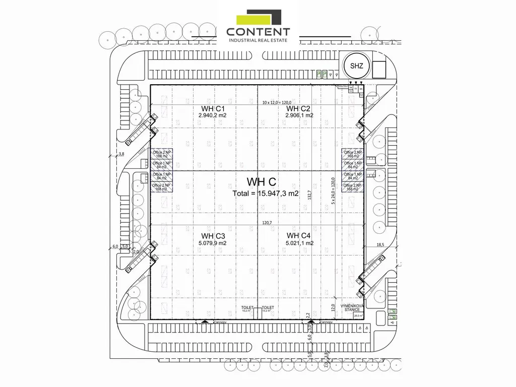 V zastoupení majitele a bez provize nabízíme komerční prostory vhodné pro sklad nebo výrobu o velikosti 2940 m², umístěné v nově vznikajícím parku, nedaleko dálnice D11 a D35.