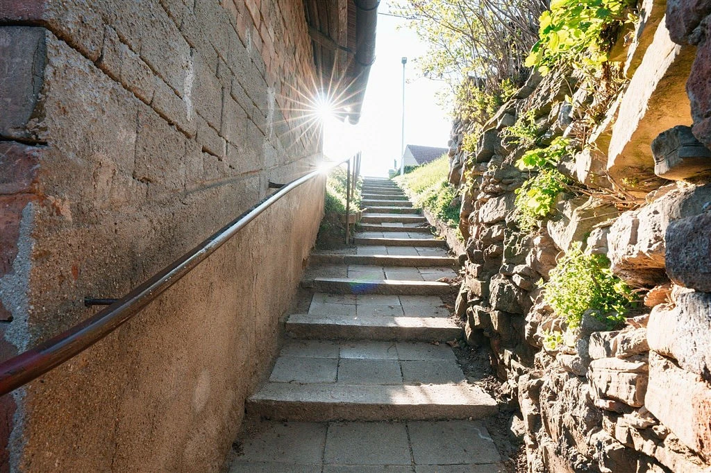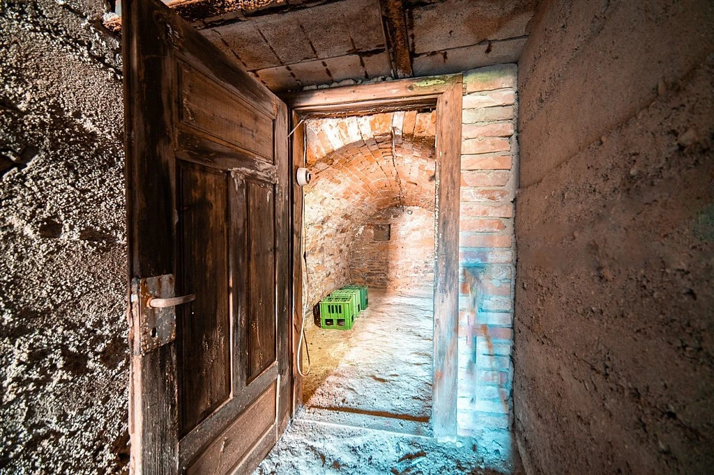 Obě části jsou propojeny průchodem o šířce cca 1,5 m. Sklep se nachází v hlubší úrovni pod zemí, což zajišťuje stálou teplotu ideální pro archivaci vína nebo jiných produktů.