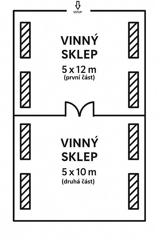 Rozměry první části sklepa č. 2: cca 5 × 12 m