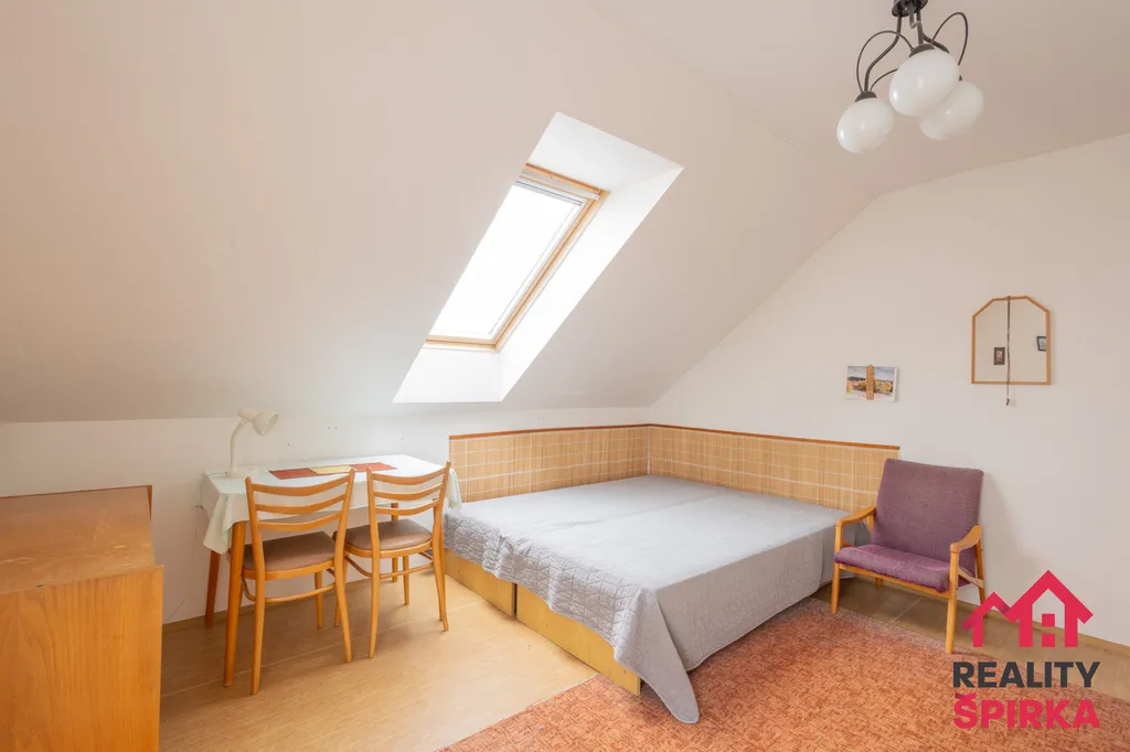 Horní patro domu skrývá půdní prostor, který čeká na svoji proměnu v pracovnu, pokoj pro hosty, hernu pro děti nebo ložnici. Možností je tolik, že jediným limitem je vaše představivost. Výborná možnost, jak zvýšit hodnotu domu a přizpůsobit ho přesně svým potřebám.