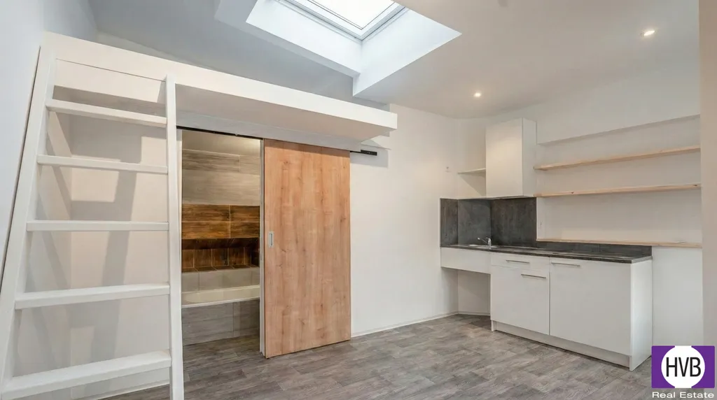 Rezervace. Nabízíme na prodej byt o celkové velikosti 20 m2 dispozice 1+kk (16 m2 + 4,5 m2 patro na spaní), v osobním vlastnictví, v lokalitě Praha 3 - Žižkov, ul. Husitská. V jednotce se nachází kuchyňský kout, koupelna s WC a sprchovým koutem (vanou), místo na skříně a stůl, dále spací patro o velikosti 4,5 m2. Byt se nachází v přízemí domu, který prošel kompletní revitalizací, okno je střešní + dveře jsou částečně prosklené, vytápění je řešené pomocí ekonomicky nenáročné klimatizační jednotky. Vzhledem k vysoké poptávce po nájemních bytech, doporučujeme i jako zajímavou investiční příležitost (dlouhodobé či krátkodobé pronájmy). V okolí je kompletní občanská a kulturní vybavenost i výborná dopravní dostupnost. V případě zájmu či dotazů neváhejte kontaktovat makléře i během víkendu.