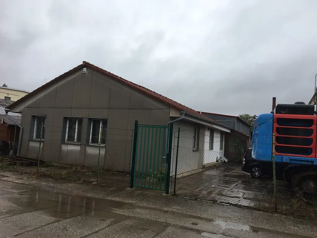 Vedle plochy je kancelářský dům s užitnou plochou 180 m2. Možnost pronájmu plechové haly pod jeřábem.