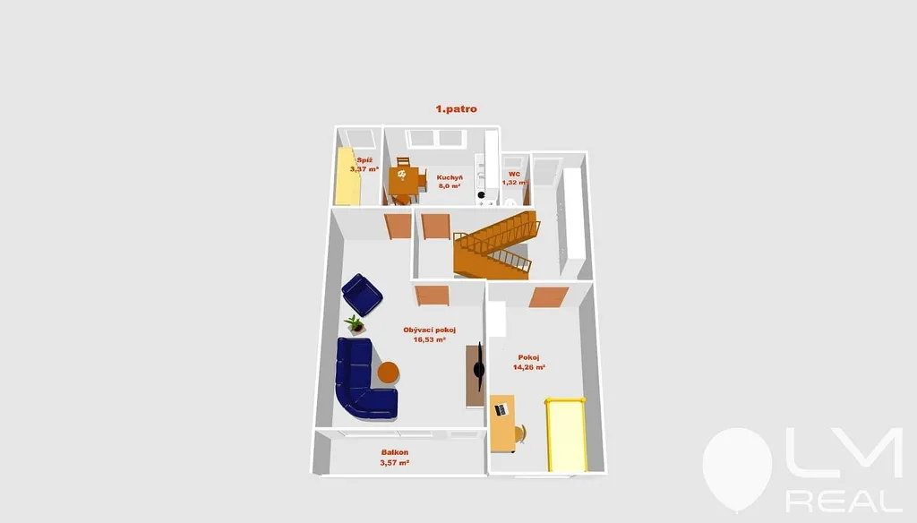 2. NP kuchyně se spíží a jídelním koutem, obývací pokoj, dvě ložnice, balkon,