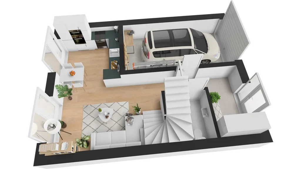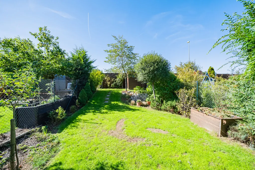 V přízemí domu je obývací pokoj s jídelnou, kuchyní, vstupem na terasu domu a dále do zahrady. Kuchyňská linka je vybavena spotřebiči ( varná deska, digestoř, trouba, mikrovlnná trouba, myčka nádobí, lednice, mrazák). Garáž domu je přístupná vraty na dálkové ovládání a je prakticky propojena dveřmi s interiérem domu, což poskytuje pohodlí v rámci nákupů a umožňuje jednoduché využití garáže v rámci úložného prostoru. V přízemí domu je vstupní chodba, koupelna se sprchou a toaletou. Patro domu má tři samostatné pokoje. V ložnici jsou vestavné skříně. Pokoje je možno využít dle vlastní potřeby, jako dětské pokoje, ložnice či pracovnu. V patře domu je další koupelna se sprchovým koutem a vanou. Toaleta je zde samostatná. V domě jsou předokenní žaluzie. Zahrada domu je velmi pečlivě udržovaná, rovinatá, zatravněná se vzrostlými stromy, dřevinami. Za zmínku stojí také maliny a rybíz. Zahrada má jednoduchý systém zavlažování. Výhodou je úložný domeček a především zastřešená terasa domu, která svým využitím reálně zvětšuje plochu domu.
