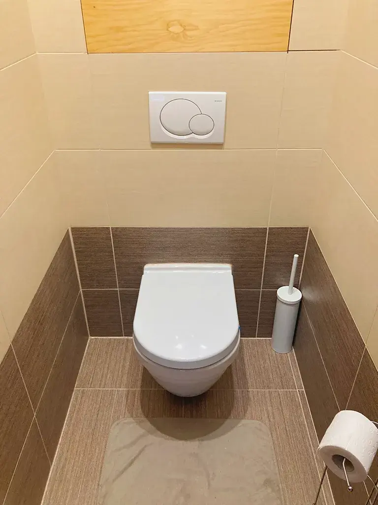 Byt je po dřívější částečné rekonstrukci. Po vstupu do velké předsíně je vpravo vstup do největšího pokoje využívaného jako obývací. Na něj navazuje prostorná kuchyně umožňující umístění velkého jídelního stolu. V kuchyňské lince je instalovaná také myčka nádobí. Pokoj navazující na kuchyni, v němž jsou dokonce 2 okna, je také velký a je v něm k dispozici televize. Nejmenší z obytných pokojů je samostatně přístupný z předsíně a je v něm velká skříň a televize. V předsíni jsou umístěny velké vestavěné skříně. Bytové jádro bylo kompletně rekonstruováno – v koupelně je vana a prostor pro umístění pračky. WC je odděleno a je závěsné.