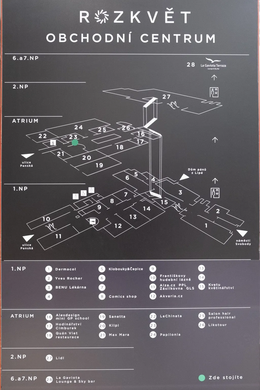 Lokalita: OC Rozkvět, Náměstí Svobody, Brno